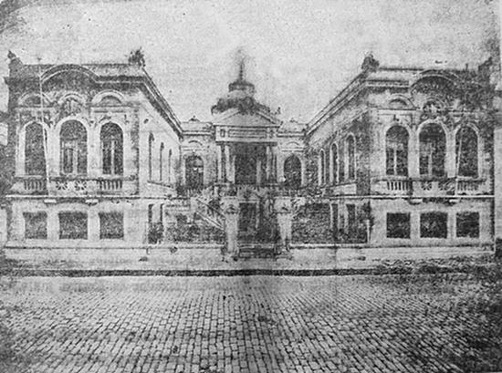À noite, a fachada da Sociedade Italiana foi iluminada,