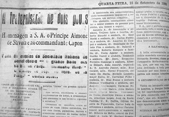 Banca Italiana di Sconto; diretores e sócios da associação italiana visitada, e grande número de senhoras e senhoritas.