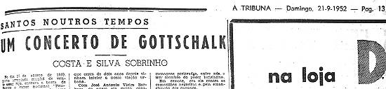 publicada a 13, sob o título "Gottschalk - Concerto em Santos", assim se enunciava: