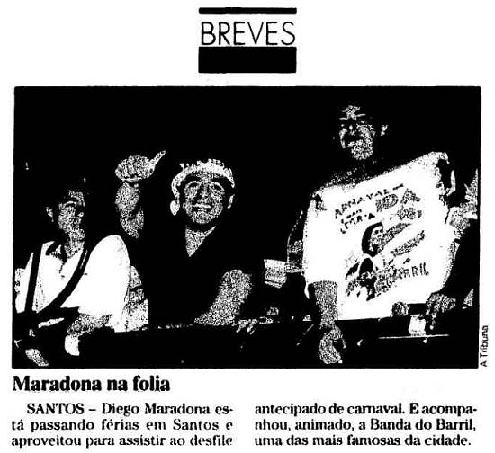 Isso mesmo, pra quem não sabe ou não se lembra, Maradona desfilou em fevereiro de 1998 no pré-carnaval de Santos.