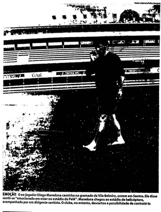 Mas a presença de Maradona no time do Santos F.C. chegou a ser dada como certa em manchete do jornal O