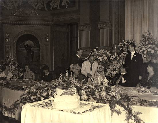 Bodas de Ouro de João Fracaroli, em 1950. Na foto, de costas, Charles e Dulce, Anna Frank, Wanda Orlandi, Elizabetha e Hubert Melin
