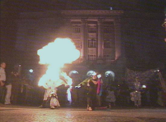 e Silva e seus irmãos, e sua influência nos destinos do Brasil como mentores do processo de independência nacional. A encenação foi feita à noite,