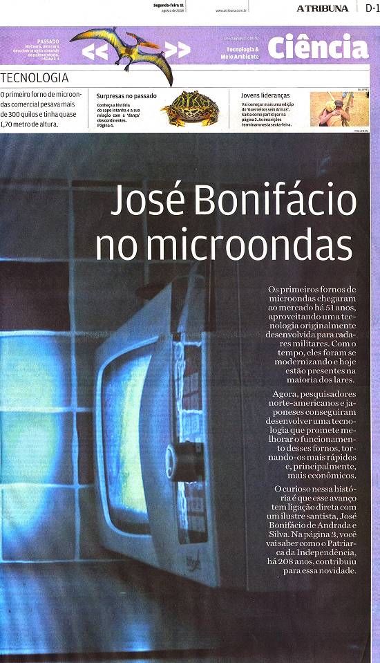 Matéria publicada no caderno Ciência & Tecnologia, do jornal santista A Tribuna, em 11 de agosto de 2008, páginas 1 e 3, versões impressa e eletrônica: