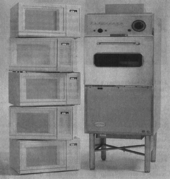 350 quilos, 1,68 metro -  Em 1946, o pesquisador norte-americano Percy Spencer trabalhava na indústria Rhayteon, especialista em radares de uso militar, quando percebeu que um chocolate em seu bolso havia derretido em razão da emissão de ondas de rádio. No ano seguinte, a empresa construiu o Radarange, o primeiro forno de microondas comercial. Ele tinha 1,68 metro de altura e pesava quase 350 quilos. Produzia três mil watts, três vezes a radiação produzida pelos aparelhos atuais, e era refrigerado a água.