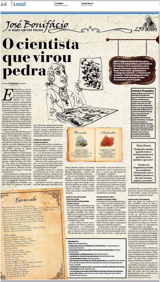 Um brasileiro na Tabela Periódica e no micro-ondas - O Patriarca da Independência descreveu e batizou quatro espécies minerais - a petalita, a espodumênio, a criolita e a escapolita - e oito variedades de espécies já identificadas.