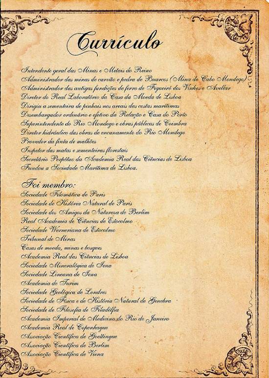 CURRÍCULO - Intendente geral das Minas e Metais do Reino; administrador das minas de carvão e pedra de Buarcos (Mina do Cabo Mondego); Administrador das antigas fundições de ferro de Figueiró dos