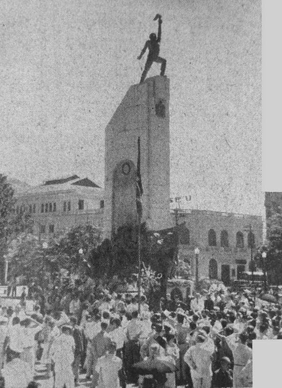 Enorme multidão se comprimiu na Praça José Bonifácio para assistir à inauguração do Monumento ao Soldado da Revolução Constitucionalista