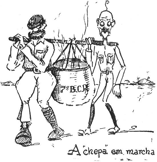 bebia água. E que, apesar disso, conduzia soldados para combate. Ficando na retaguarda. De cantil à boca. Mamando o último gole da branquinha...