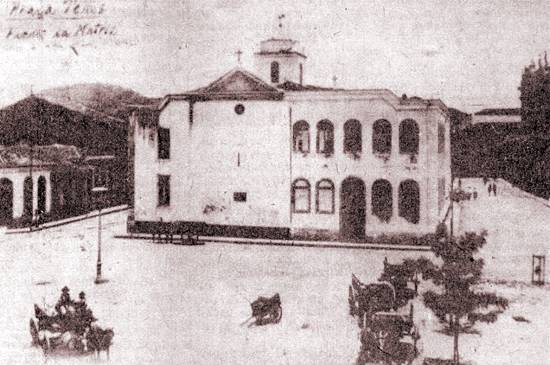 Fachada da antiga Matriz da Praça da República, em princípios do século XX