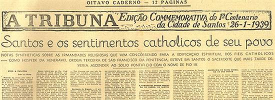 Na data em que Santos festejou seu primeiro centenário como cidade, em 26 de janeiro de 1939, o jornal santista A Tribuna publicou uma edição especial comemorativa, em que foi incluído este artigo: