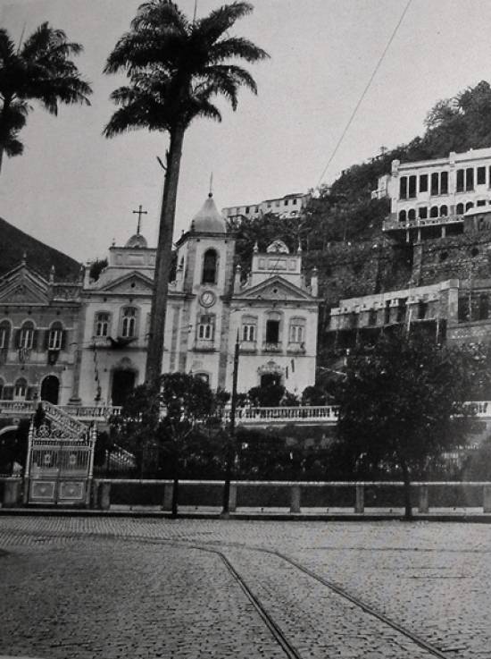 Consta no mapa feito com base em documentos antigos da Vila de Santos de 1765, e posteriormente em 1801, a existência da igreja de São
