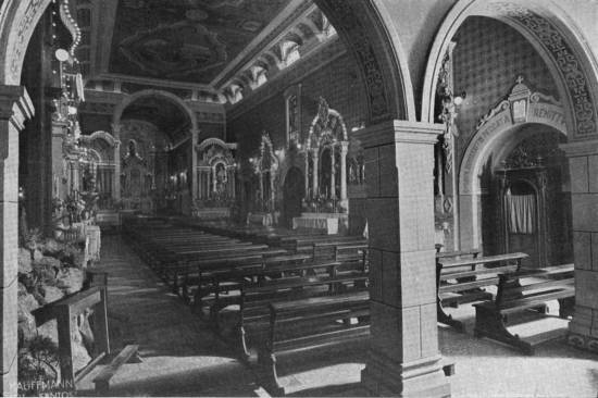 laterais. Em 1931 inaugurou-se a nova Via-Sacra com quadros em relevo (15 de março) e a nova gruta de Lurdes (10 de maio) no corpo da igreja. Assistiram à bênção os benfeitores Pedro Borges Gonçalves e sua digna consorte. O sétimo centenário da