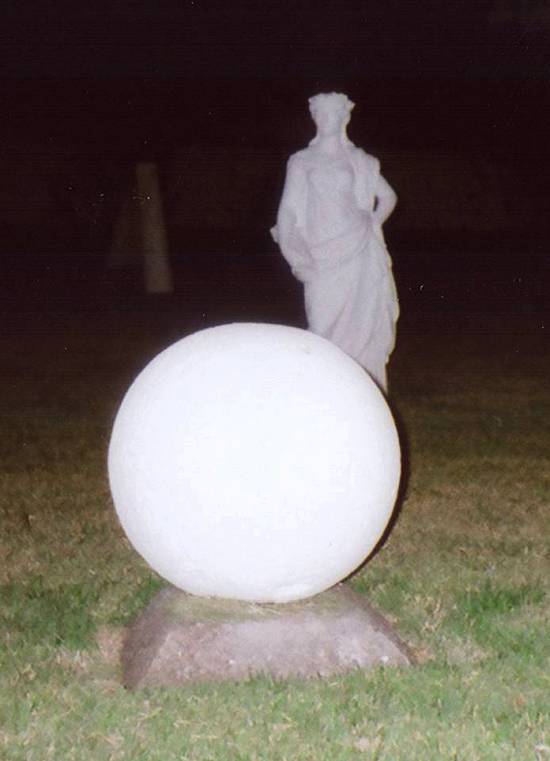 Bola de pedra da ponteira da torre da antiga Igreja de S. Francisco de Paula, na Capela S. Isabel