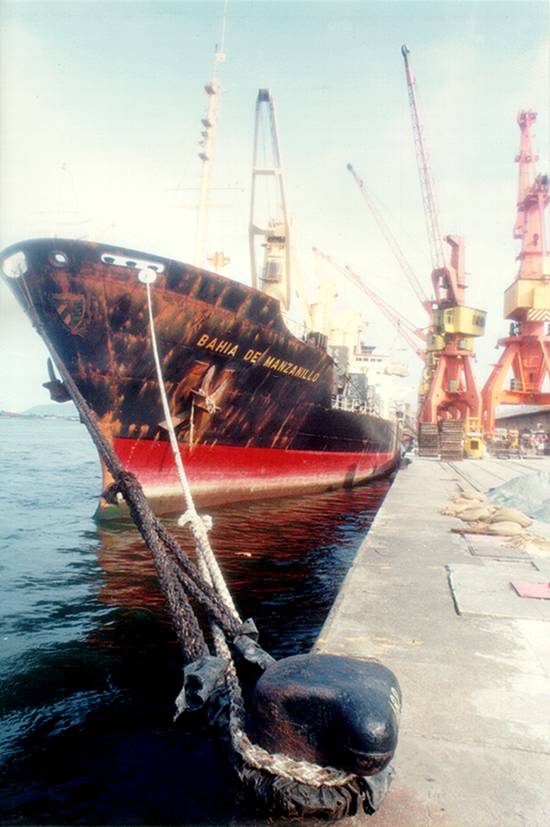 O Bahia de Manzanillo numa de suas escalas em Santos, em foto de 1993