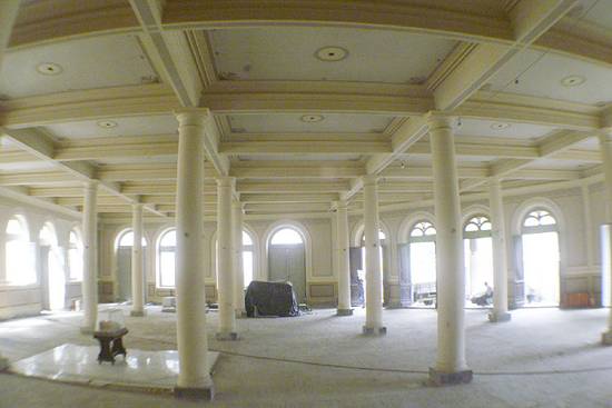 Adolfo Fonzari, iluminada por 39 lustres do salão nobre, distribuídos entre 13 colunas dóricas, caracterizadas pelo fuste canelado e a simplicidade.