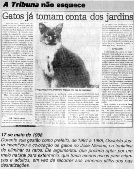 gatos no José Menino, na tentativa de eliminar os ratos. Ele argumentou que preferia optar por um meio natural para extermínio, que traria menos