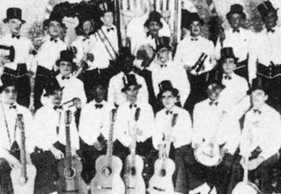 Bloco Flor do Ambiente, com seus violões, no carnaval santista de 1931