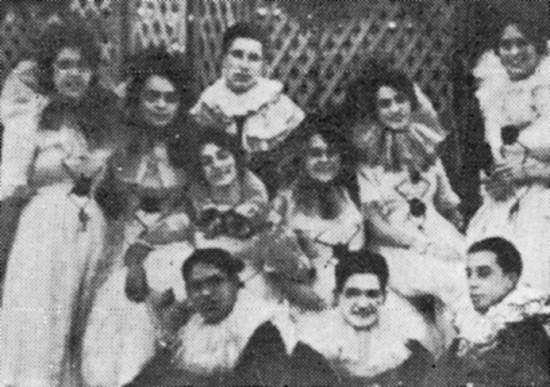 Grupo de pierrôs no carnaval santista, cerca de 1930