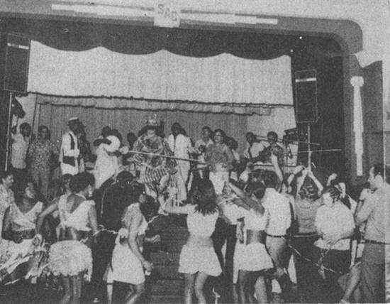 Pois bem, na noite de 16 de novembro de 1969, a sede do S. A. C., o falado Clube dos Ingleses e seus afins, no José Menino, foi pequena para a animação de intenso baile com todos os plás de folia carioca: escola de samba com rebolativas cabrochas (da Império); Banda Carnavalesca (Original Music Choral); confete, serpentina e a presença soberana de S. M. Rei Momo, I e Único (Waldemar Esteves da Cunha).