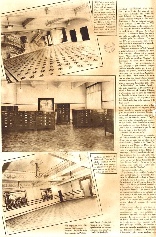 Protocolo e Fichário. É este um dos maiores salões do palácio municipal. Toma boa parte do quarto andar. É todo aparelhado pela firma Isidoro