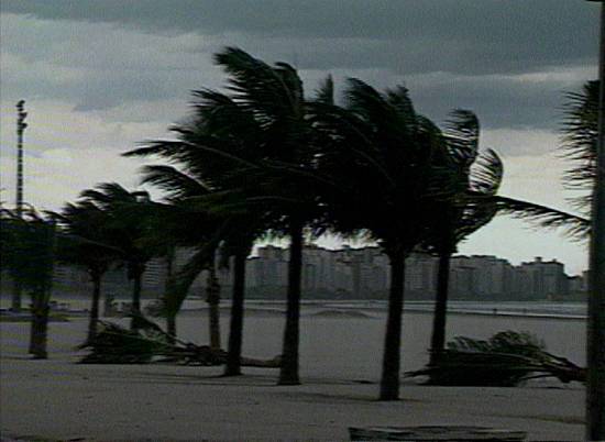 seguir, de fortes ventos e início de temporal, registradas pela TV Tribuna na tarde de 23 de maio de 2003: