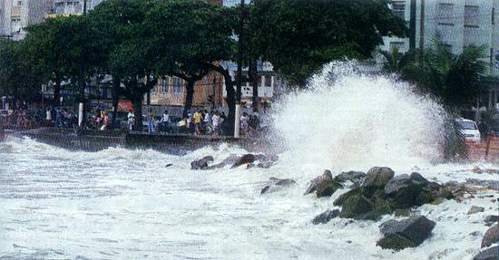 "O fenômeno aconteceu em virtude da coincidência de todos esses fatores, somados ao forte vento (de ontem)", explica. Caso seja analisada a previsão de ondas e maré, segundo Cíntia, o fenômeno é facilmente detectado. Tanto que houve um aviso aos navegantes para não irem ao mar. "Dá para prever. Só não há exatidão quanto ao nível que as ondas podem atingir", finaliza.