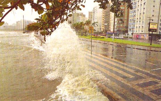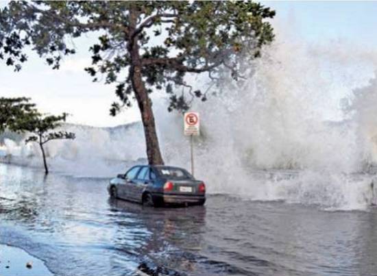 excesso de ressacas, da elevação do lençol freático e do nível do mar serão: a destruição de imóveis da orla; problemas nas atividades portuárias;