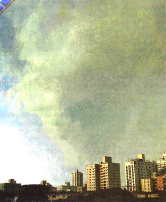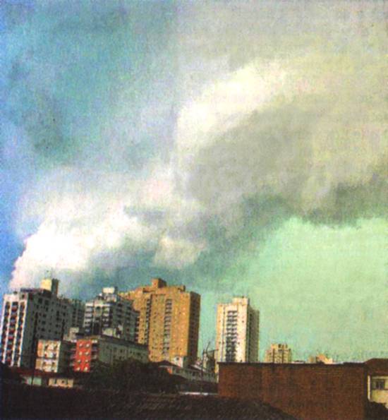 São Vicente. Na tarde do dia 17, uma nuvem em formato de funil apresentava pré-condições para a formação de um tornado,