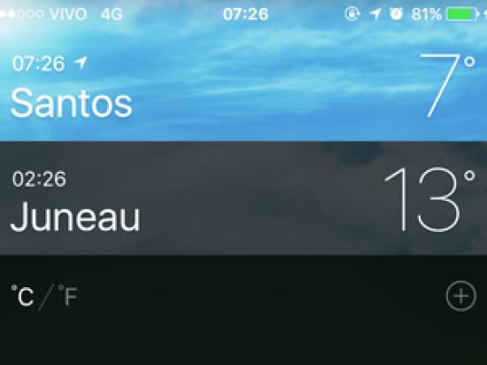 O G1 comparou as temperaturas entre as cidades de Santos e Juneau por um aplicativo de celular. Enquanto Santos registrava 7 ºC às 7h26, Juneau marcava 13 ºC. Já o ponto mais frio do dia, segundo a Base Aérea local, ficou em 6.7 ºC no começo da