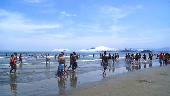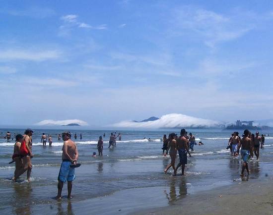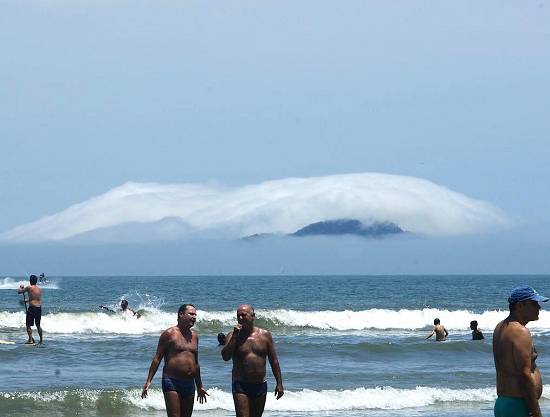 de chuva, foram as densas camadas de nuvens que chamaram a atenção nas praias da Baixada Santista. E o calorão também, claro.