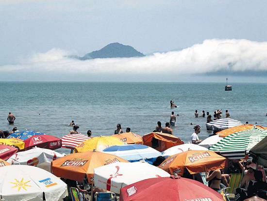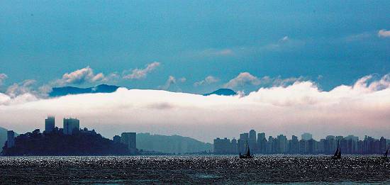 tarde. Segundo a Base Aérea de Santos, a formação da densa camada é um fenômeno típico do verão.