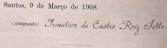 (Assinado) Primitivo de Castro Roiz Sette.