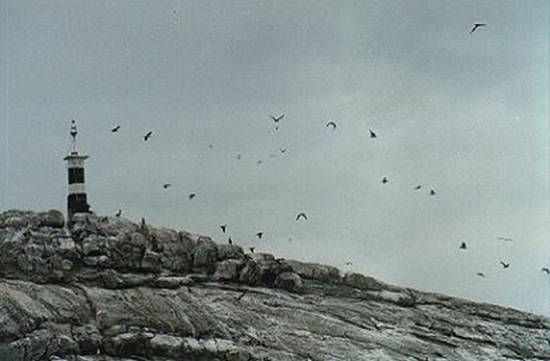 A formação rochosa e o farol, vistos em 1998 Foto: Prefeitura Municipal de Santos