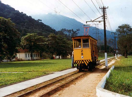 Uma pequena linha de bondes elétricos ainda funciona naquela vila