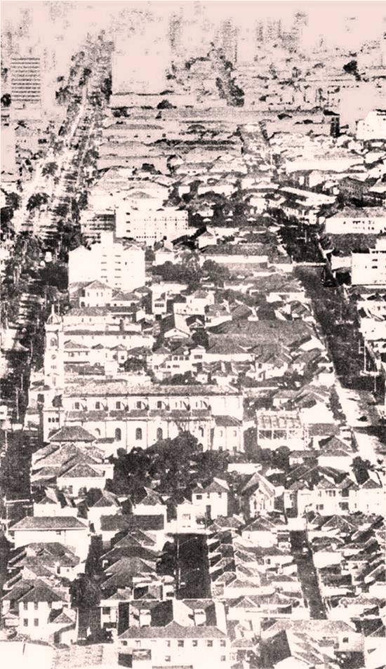 Foi na segunda metade do século passado (N.E.: século XIX) que a ilha de São Vicente começou a sair do centro histórico, hoje ocupado por casas de comércio, financeiras, bancos, órgãos públicos, comissárias e corretoras de café, armazéns gerais, pequenos hotéis e pela "boca" que funciona na periferia do cais.
