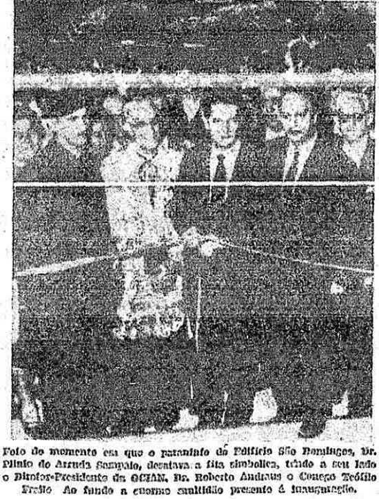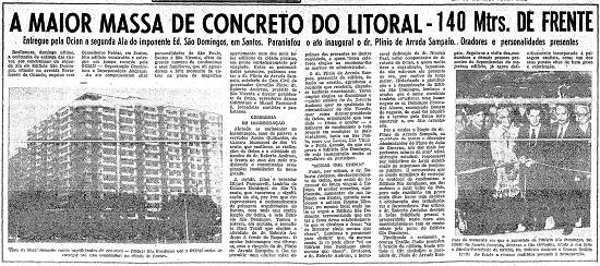 Entregue pela Ocian a segunda Ala do imponente Ed. São Domingos, em Santos. Paraninfou o ato inaugural o dr. Plínio de Arruda Sampaio. Oradores e personalidades presentes