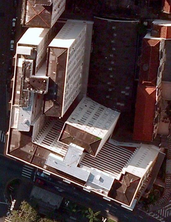 O edifício, na confluência das avenidas Conselheiro Nébias e Bartolomeu de Gusmão, em 2011