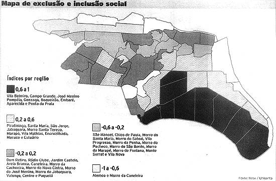 realizado na Cidade que mostra as diferenças sociais entre 47 bairros e morros, apontando os com maior e menor Índice de Exclusão e Inclusão Social