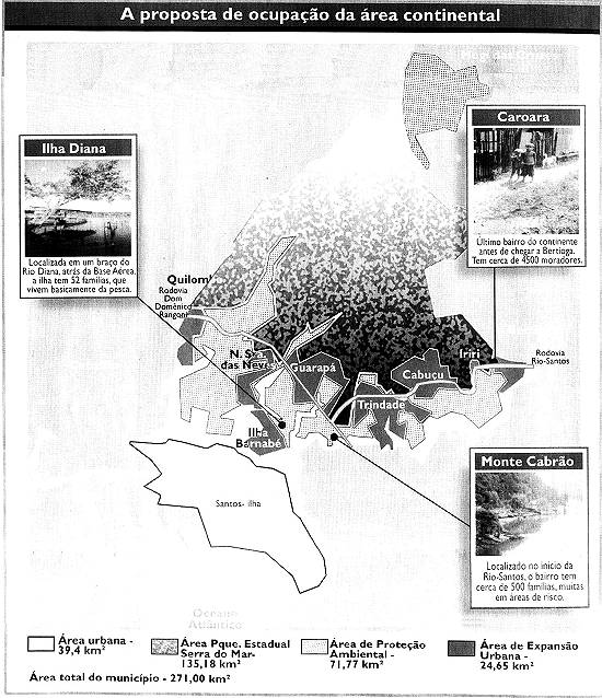 com o distrito de Vicente de Carvalho, no Guarujá. A lei da APA está sendo reestudada para ampliar a ocupação da área urbana, em consonância com