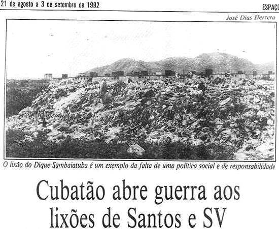 Metropolização, conurbação, verticalização. Os santistas passaram a segunda metade do século XX se acostumando com essas três palavras, que sintetizam um período de grandes transformações no modo de vida dos habitantes da Ilha de São Vicente e regiões próximas. Um dos grandes problemas que a Baixada Santista sentia já então a necessidade de equacionar era o da destinação do lixo. Que gerou, entre muitas outras, esta matéria do jornal quinzenal santista Espaço Aberto, na edição de 21 de agosto a 3 de setembro de 1992: