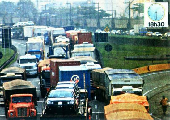 viaduto da Alemoa) e o Km 60 da Anchieta, os autos demoravam 45 minutos para andar um quilômetro. E levaram, em média,