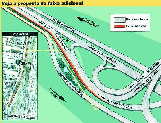 construção de mais uma faixa de rolamento na pista Sul da rodovia, entre o Km 63 e o Km 64. A proposta foi apresentada por A Tribuna em junho