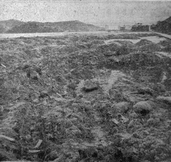 flagelada, há possibilidades de alguns corpos ainda estarem soterrados, não se acreditando, entretanto, que sejam em grande número.