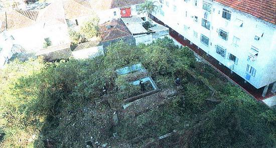 desabou às 23h15 de anteontem no bairro do Gonzaga (classe média-alta), em Santos. Um operário morreu e três estavam desaparecidos até a tarde de