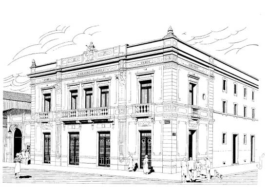 O teatro, em sua segunda fase, num bico-de-pena de Ribs