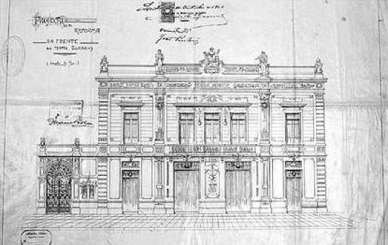 MEMÓRIA – A planta da reforma do Theatro Guarany, de 1910. Essa foi a guia utilizada na restauração, terminada em 2008. O Guarany, contudo, foi inaugurado ainda em 1882. Mas a planta original se perdeu. Sabe-se que a fachada era diferente