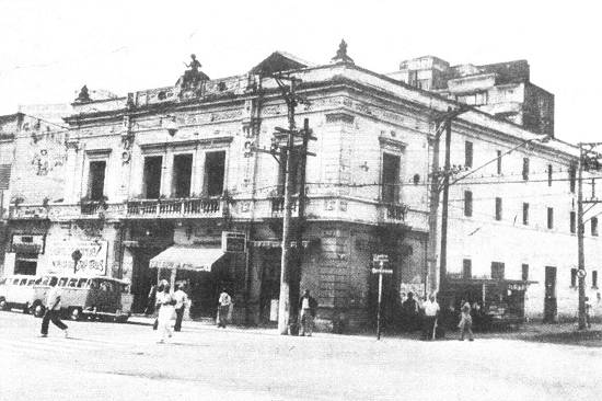 Ao primeiro olhar, uma foto feita em 2004 engana o observador distraído, que pensará ver uma cena de bosque, numa cidade serrana do interior paulista. Só com a explicação ele se localizará e perceberá que no primeiro plano o bosque são as ruínas do Teatro Guarany, bem no centro de Santos. Sobre esse teatro, então já descaracterizado, com partes da edificação alugadas para uso por estabelecimentos comerciais (mas ainda inteiro), foi publicada esta matéria em 22 de maio de 1977 no antigo jornal Cidade de Santos: