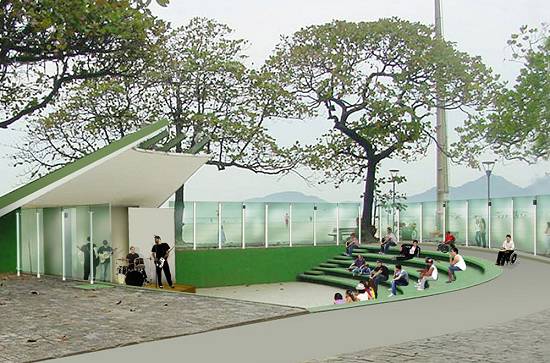 à praia escutar um concerto. Ou, no fim de semana, os pais levando seus filhos para assistir a um teatro infantil". Talvez o sonho do arquiteto