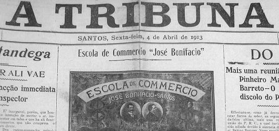 Foto: Imagem: reprodução parcial da página 1 de A Tribuna de 4/4/1913
